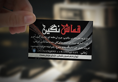 کارت ویزیت قماش نگین  لایه باز فارسی بسیار زیبا که نظر هر مخاطبی را به خود جلب می نماید.