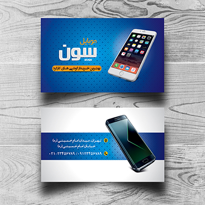کارت ویزیت موبایل فروشی لایه باز فارسی با تم آبی و زیبا که نظر هر مخاطبی را به خود جلب می نماید.