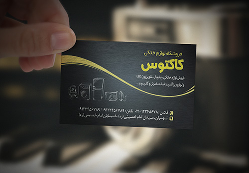 کارت ویزیت لوازم خانگی لایه باز فارسی با تم مشکی و بسیار زیبا که نظر هر مخاطبی را به خود جلب می نماید.