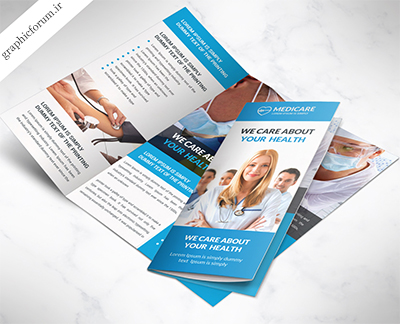 بروشور لایه باز پزشکی با طراحی ساده و زیبا و تم آبی و سفید